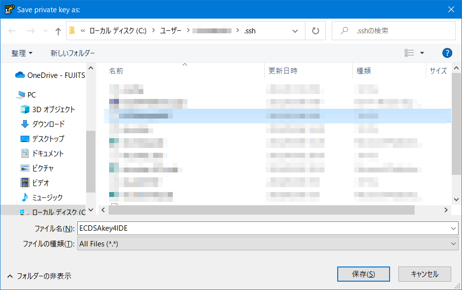 Enter the filename where you want to store the private key in “File name (N)” and click the “Save(S)” button. The private key is stored. Eclipse uses the filename you enter here.