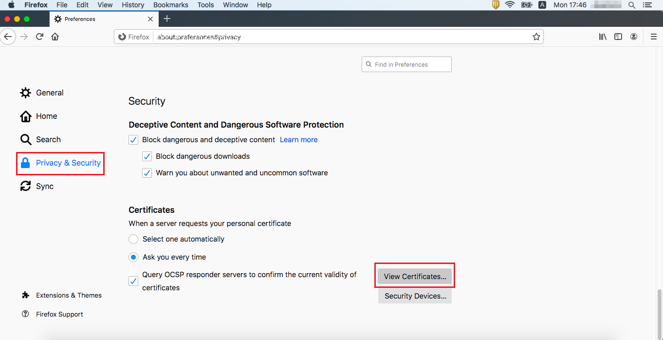 4.2.2. Installing the certificate on Firefox (Mac)¶