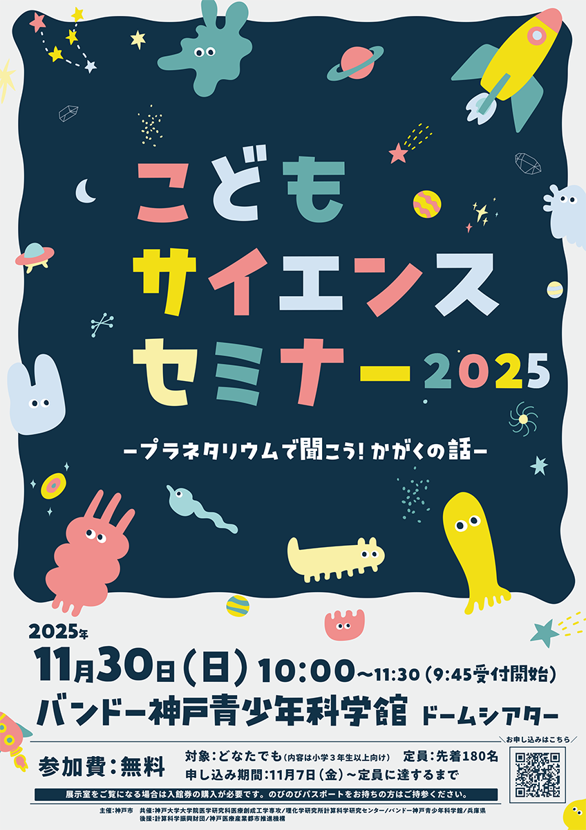 トップページ    イベント・広報    イベントカレンダー    こどもサイエンスセミナー2025 -プラネタリウムで聞こう!かがくの話-(2025年11月30日・神戸)